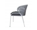 Стул "Милан" для обустройства обеденной или лаунж-зоны. Изготовлен из алюминиевого каркаса, оплетенного вручную эластичными синтетическими лентами из высокопрочных полиэфирных волокон (роуп круглый). Цвет каркаса - белый, оплетки - светло-серый. В комплект входит подушка со съемным чехлом из 100%-го полиэстера с влагоотталкивающей пропиткой. Размеры плетеного стула: 600×660×795 мм.