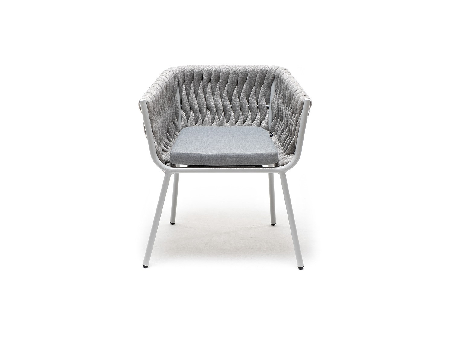 "Монако" стул плетеный из роупа, каркас алюминий светло-серый (RAL7035) муар, роуп светло-серый 40 мм, ткань светло-серая в Каменске-Уральском