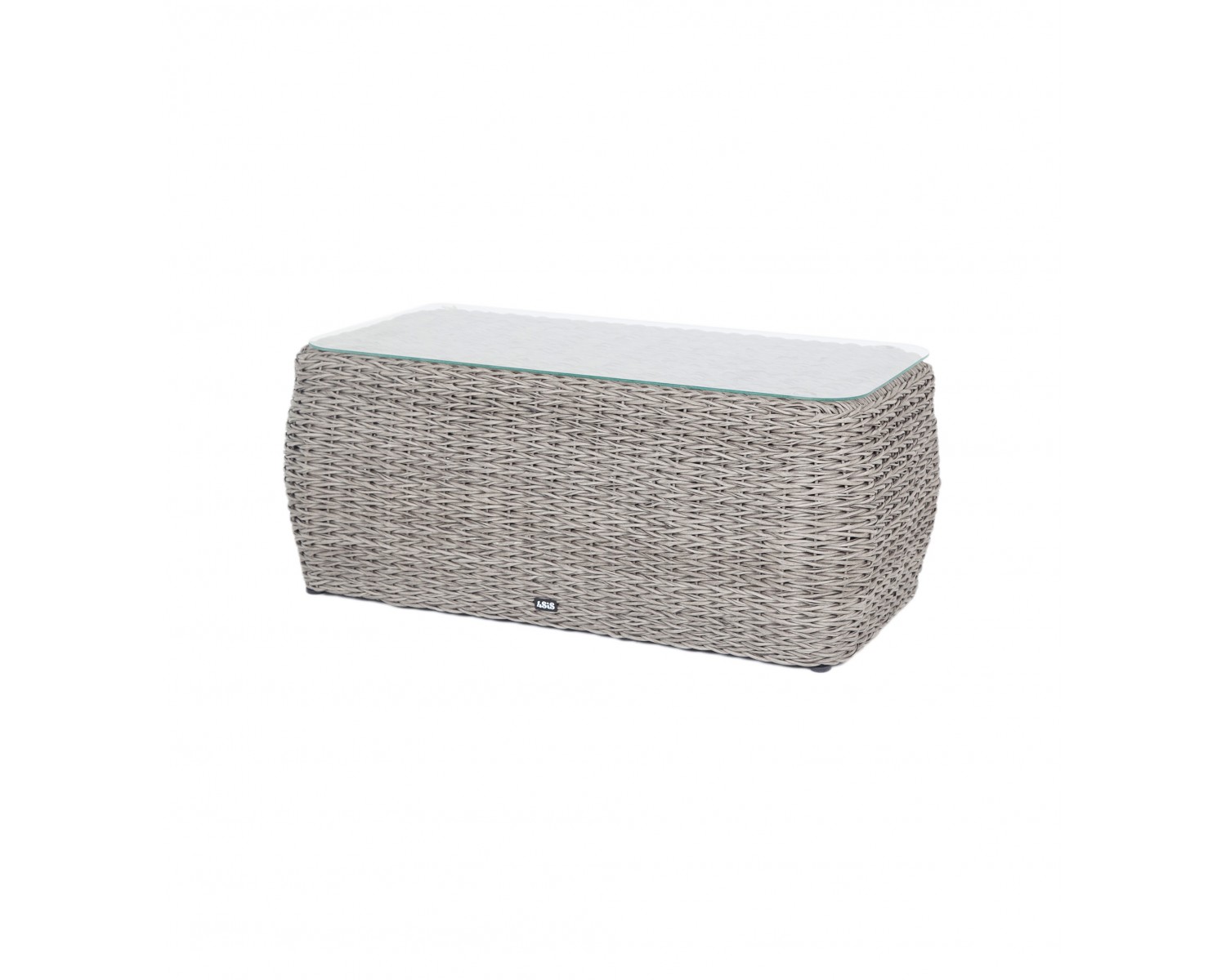 Журнальный столик «Кальяри» используется как в комплекте, так и в качестве отдельного предмета для сада, открытой террасы или балкона. Каркас столика изготовлен из алюминия, вручную оплетенного круглым искусственным ротангом "гиацинт". Столешница из закаленного стекла толщиной 5 мм. Благодаря износостойким материалам, стол пригоден для использования на улице при любой погоде и не требует специальных условий хранения. Плетеный столик представлен в сером цвете. Размеры стола: 1050×590×430 мм, вес 16,5 кг.